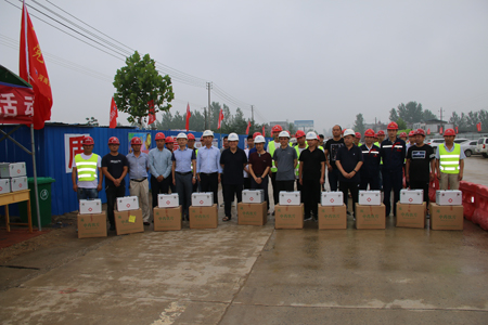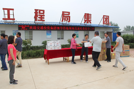 在周南高速、息邢高速王洛生副主席代表交通投资华体huati(中国)工会对高温下坚持奋战在施工一线的人员进行了慰问,分别给一线施工人员发放了防暑降温药品、清凉饮料等慰问品。