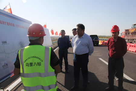 月1日,新疆维吾尔自治区交通厅党委委员、副厅长艾斯卡尔·牙合甫视察乌奎改扩建项目。