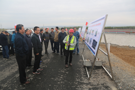 4月17日,新疆维吾尔自治区副主席赵冲久在自治区交通运输厅党委委员、副厅长李志农,交通运输厅党委委员、交通建设管理局党委书记杨成连和交通运输厅建设管理处处长孙宪魁等领导陪同下,到乌奎改扩建第八合同段调研指导工作。