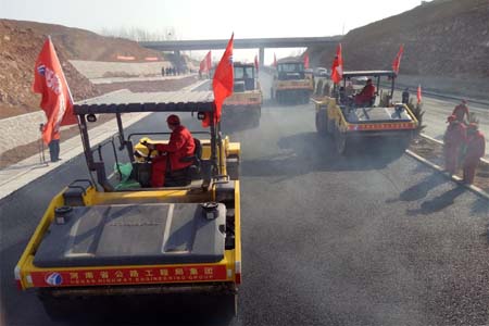 月13日,商登高速郑州境段LM3工区进行下面层试验段摊铺,经现场检测,试验段厚度、宽度、平整度符合规范要求,摊铺过程正常顺利,于当日下午三点顺利结束。起讫桩号为:K205+473----853处右幅,试验段长度380m,摊铺过程釆用挂钢丝、支边模及2钢+2胶+1钢的压路机碾压组合模式。(二公司)