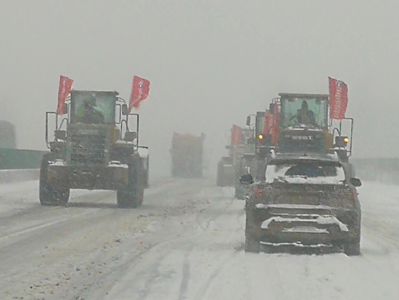 于1月24日晚8点,息邢高速“交通铁军”迎着寒风暴雪,从明港出发向着京港澳高速迈进,继续发扬不怕苦不怕累的河南交通铁军精神。(二公司)
